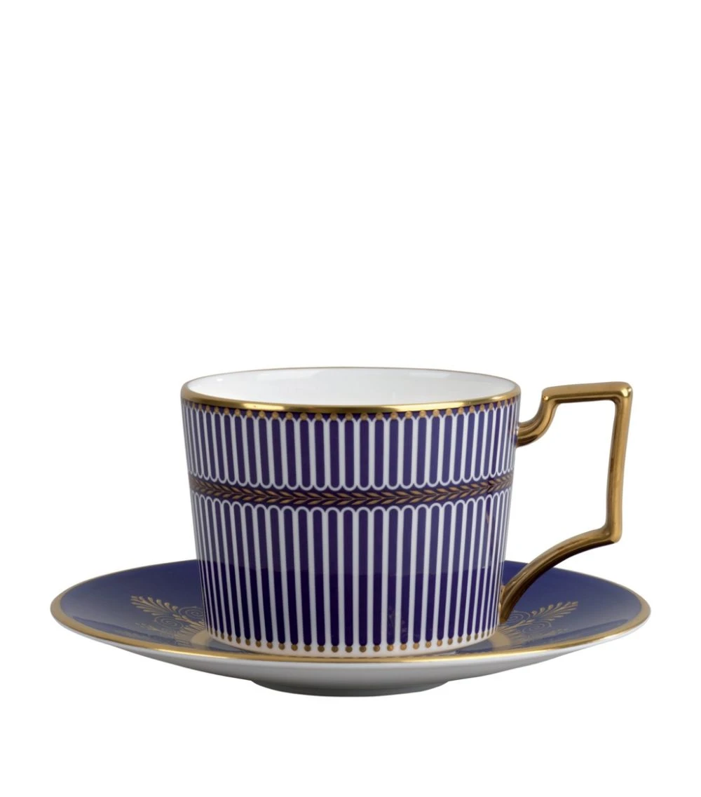 With its rich cobalt blues, lavish gold trims and exquisite Greek-inspired borders, the Anthemion Blue collection from Wedgwood is a masterclass in luxurious English tableware. Featuring traditional colonnades and classic laurel tree motifs, this teacup has been handcrafted from fine bone china adding an extravagant edge to afternoon tea.