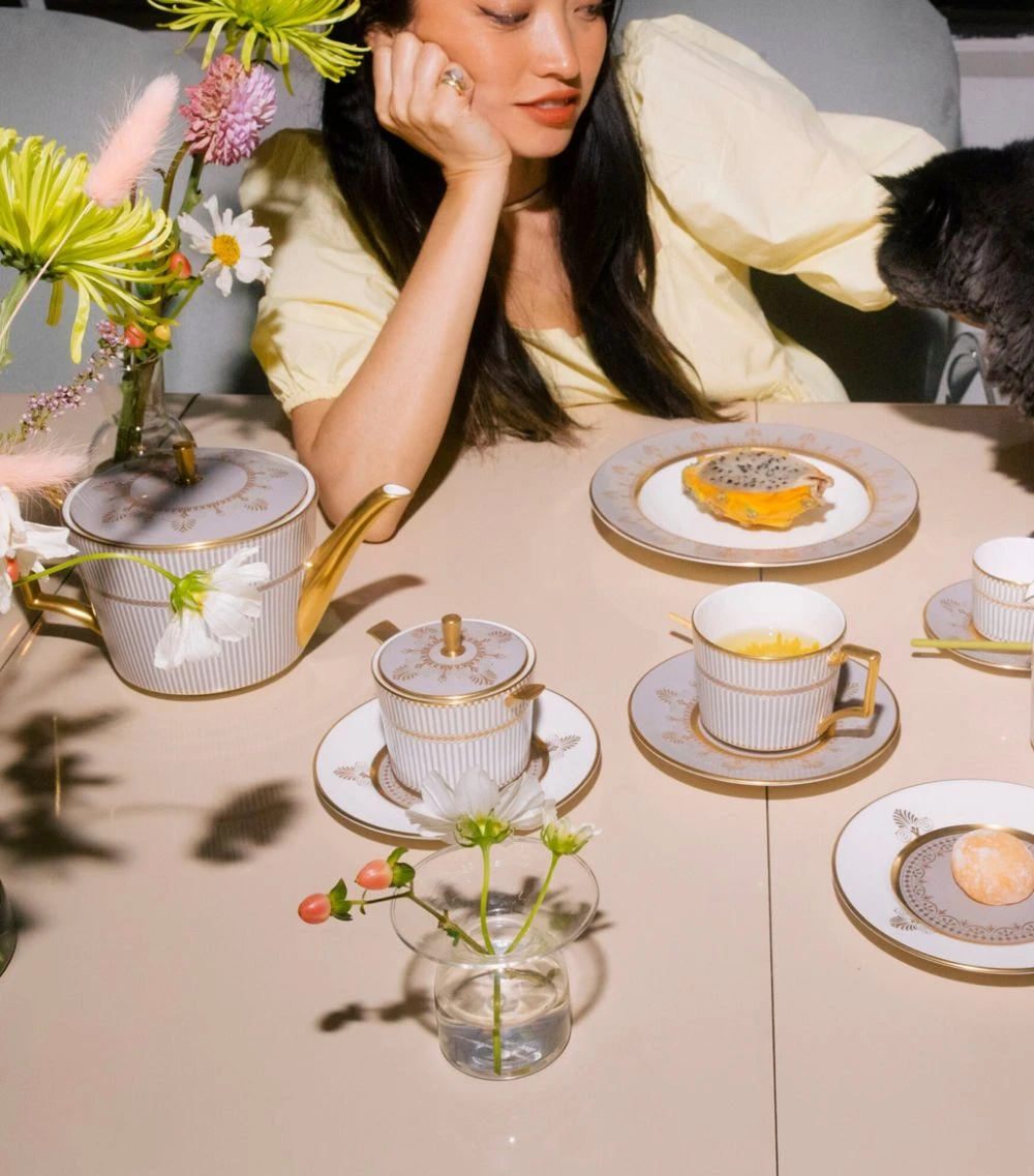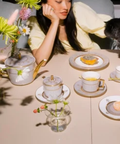 An elegant addition to your tea party table, the cream jug and sugar bowl set from Wedgwood ensures a luxurious setting as you enjoy your favourite blend. Hailing from the brand’s Anthemion Grey collection, which sought inspiration from Ancient Greece, these contemporary creations see their fine bone china profiles enlivened with colonnade patterning and trimmed with gold for an opulent finish.