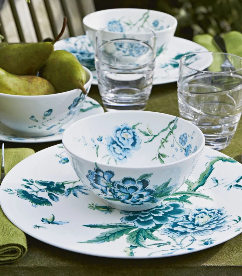 The Jasper Conran at Wedgwood Chinoiserie collection is an innovative interpretation of the 18th century British trend for patterns from the East. The Chinoiserie Plate is crafted in bone china and features an exquisite blue and green pattern of exotic flowers, foliage and birds on a fresh white background. Style it with other pieces from the collection for intimate fine dining with friends.