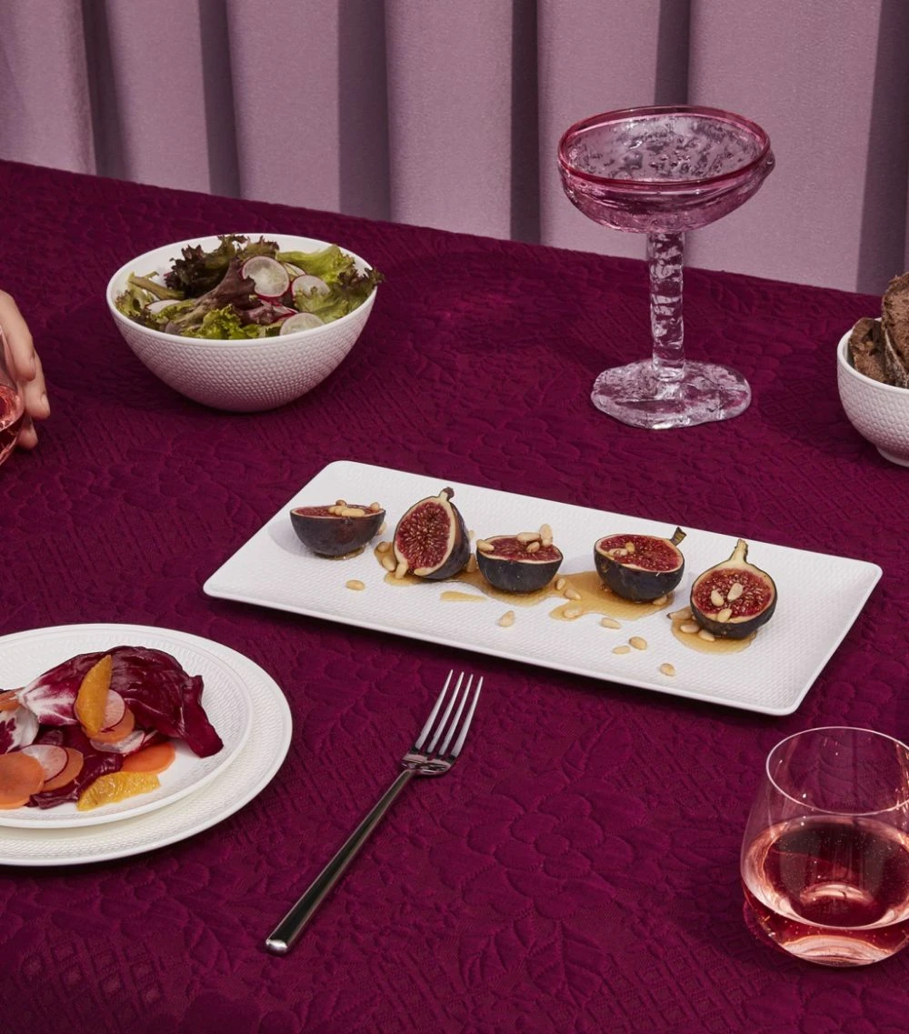 Designed in its Staffordshire studio, Wedgwood’s new Gio collection is a range of tableware made from fine bone china. Boasting a minimalist design aesthetic, the rectangular tray is embossed with intaglio patterning which provides subtle texture. It makes for the perfect serving platter for appetisers or sharing dishes like tapas.