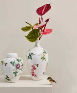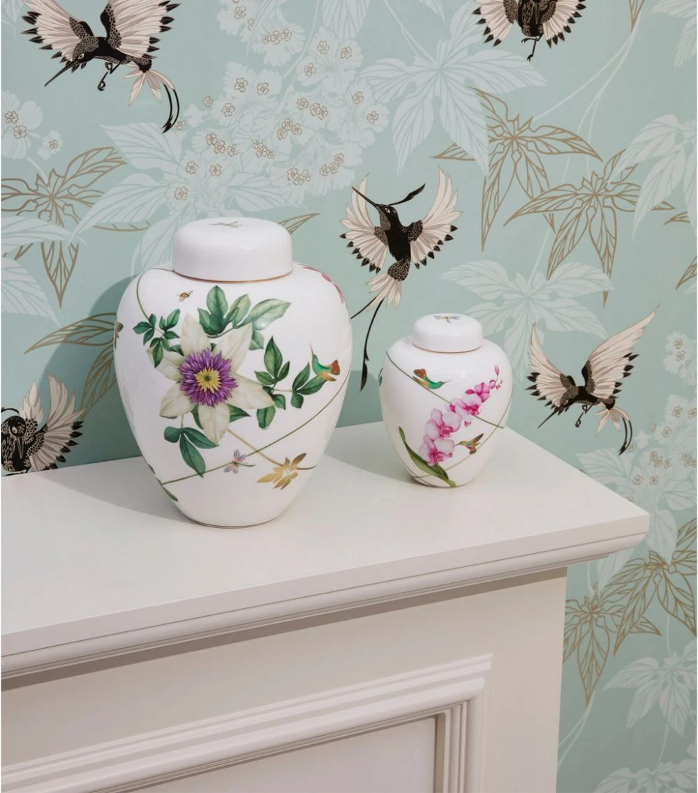 From its delicate, fairy-like wings to its beguiling, brightly coloured feathers, the hummingbird is just one of the many showcases of grandeur from the natural world. Drawing inspiration from this and harking back to the mythical world of designer Makeig-Jones’ Fairyland Lustre collection, Wedgwood’s Hummingbird range, which includes this lidded vase, combines hand-painted motifs of the ethereal bird alongside oversized blooms – each brought to life through the English pottery brand’s silky white fine bone china and 22-karat gold accents.