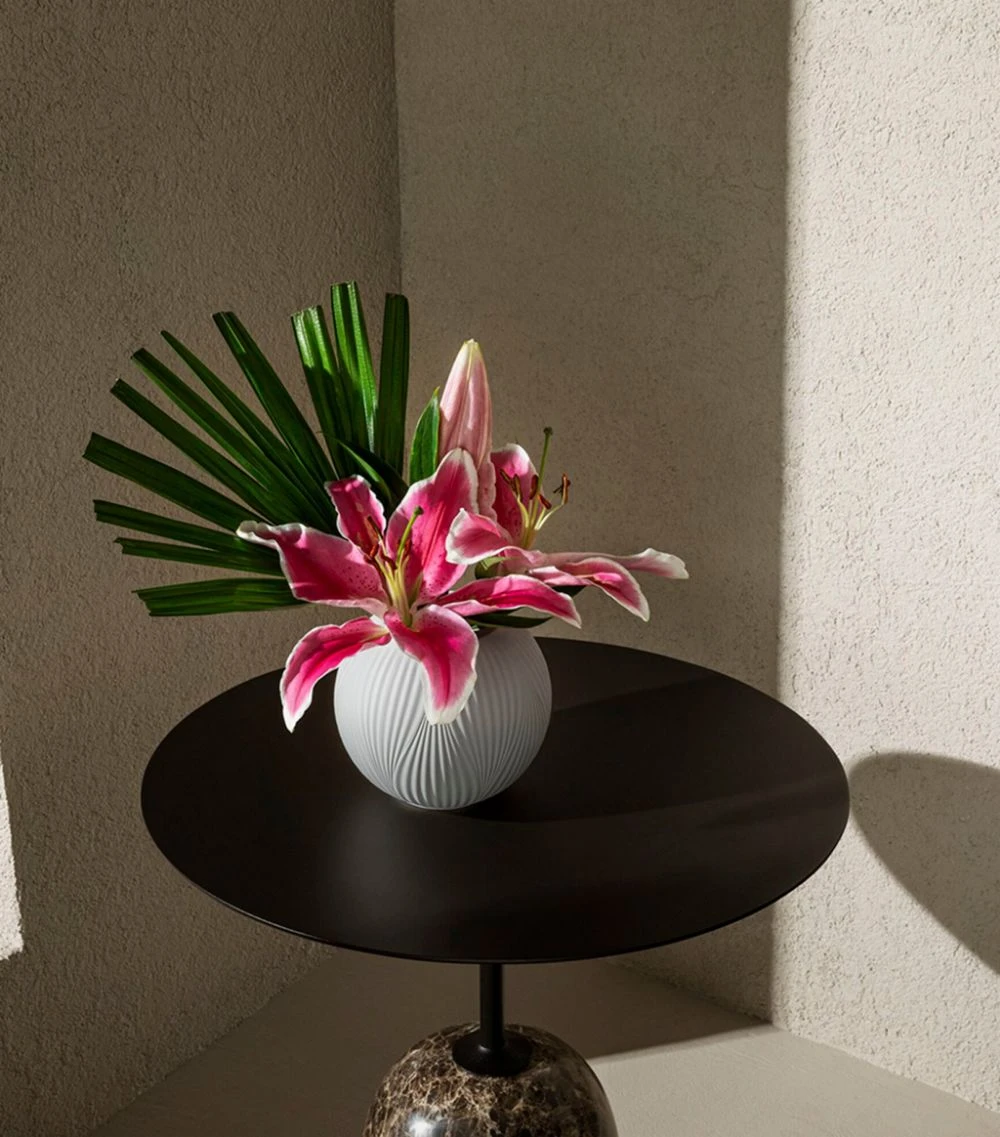 The Jasper Folia Rose bowl from Wedgwood is a spherical design to place contently on carefully curated shelves or windowsills. When accompanied by freshly picked flowers, this design affords a fresh and effortless ambience to your interior as it sits nondescriptly alongside selectively gathered ornaments from your travels.