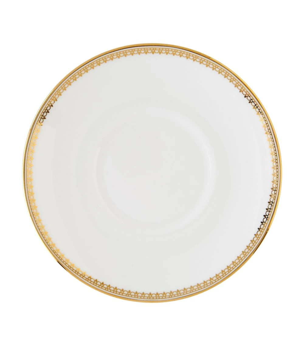 The Vera Wang Lace Gold range for Wedgwood is inspired by the brightly hued corsages in the New York designers own bridal collection. Understated with trims of patterned lace, this elegant espresso saucer will bring a touch of gold opulence to the dinner table.