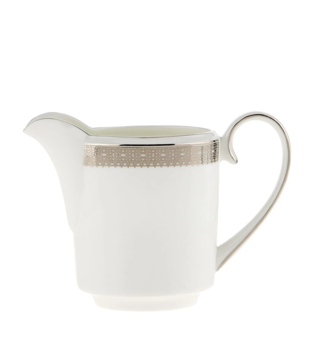 The Vera Wang for Wedgwood Lace collection is inspired by the corsages used in the renowned New York designers bridal collection, and is characterised by understated elegance. The Lace Platinum Cream Jug is crafted in white bone china and decorated with a refined tailored lace band in platinum. Let it bring a touch of opulence to any dining occasion.