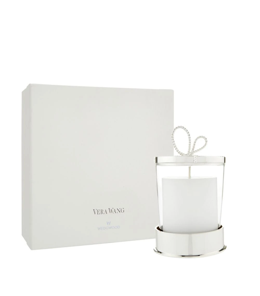 Mark special occasions with a treasured piece from Vera Wangs Love Knots collection by Wedgwood. Topped with a delicate silver bow designed to look like a piece of string, this luxurious glass candle comes nestled in a polished silver-plated base with a matching lid to protect between uses. From weddings to anniversaries, this considered style makes a perfect gift.