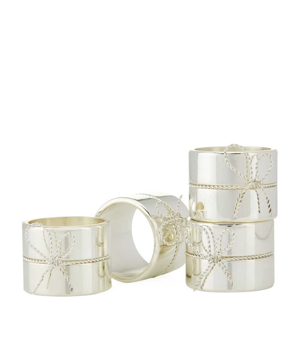 Mark special occasions with a treasured piece from Vera Wangs Love Knots collection by Wedgwood. A charming setting for any meal, this set of silver-plated napkins rings is trimmed with a twisted sterling silver bow for a sweet finishing touch.