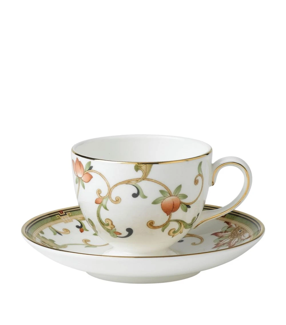 Wedgwood’s Oberon collection is defined by timeless elegance imagined in a contemporary context – a concept that imbues its pieces with a distinct authority. The design is founded on architectural grounds; its most notable features are the structural chinoiserie border that frames the style and the 22-karat gold trim. This fine bone china saucer is the perfect expression of these design codes and makes an essential addition to your home.