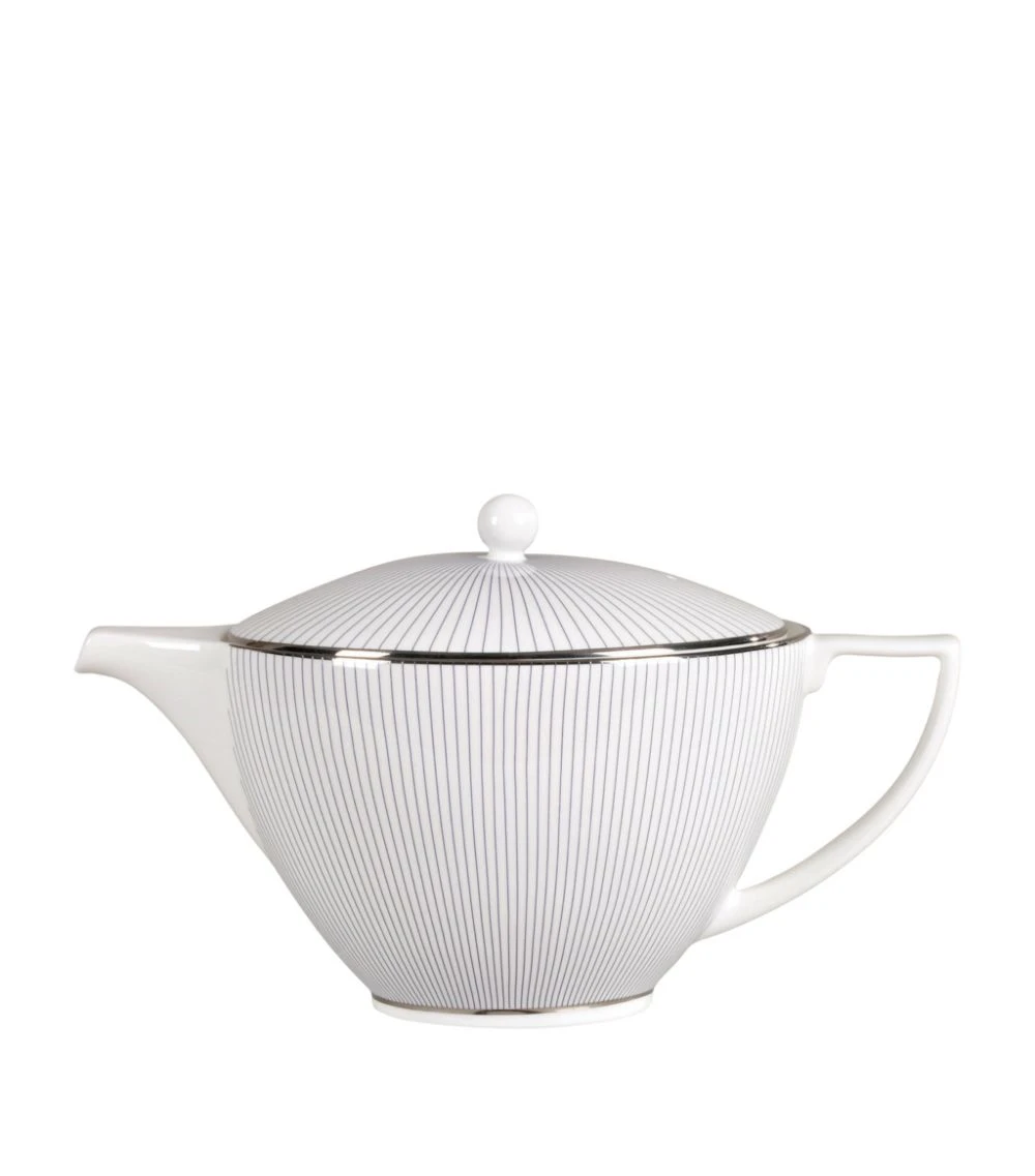 Jasper Conran takes style notes from quintessential British tailoring to inform the Jasper Conran at Wedgwood Pin Stripe collection. In fine bone china with smart platinum stripes, this elegant teapot serves up modern style for your table setting.