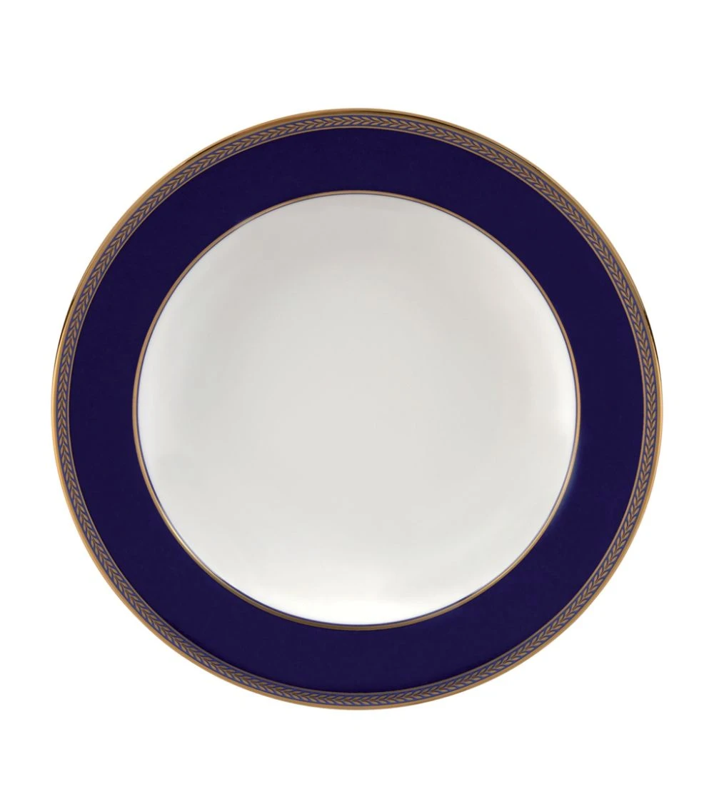 Wedgwood calls on its extensive archives to create the regal Wedgwood Regency Gold tableware collection. Crafted in exquisite fine bone china, the set offers modern simplicity with rich navy accents and oval motifs inspired by the iconic Wedgwood cameo. This soup plate serves as an understated addition to the table with its navy band and lustrous gold detailing.