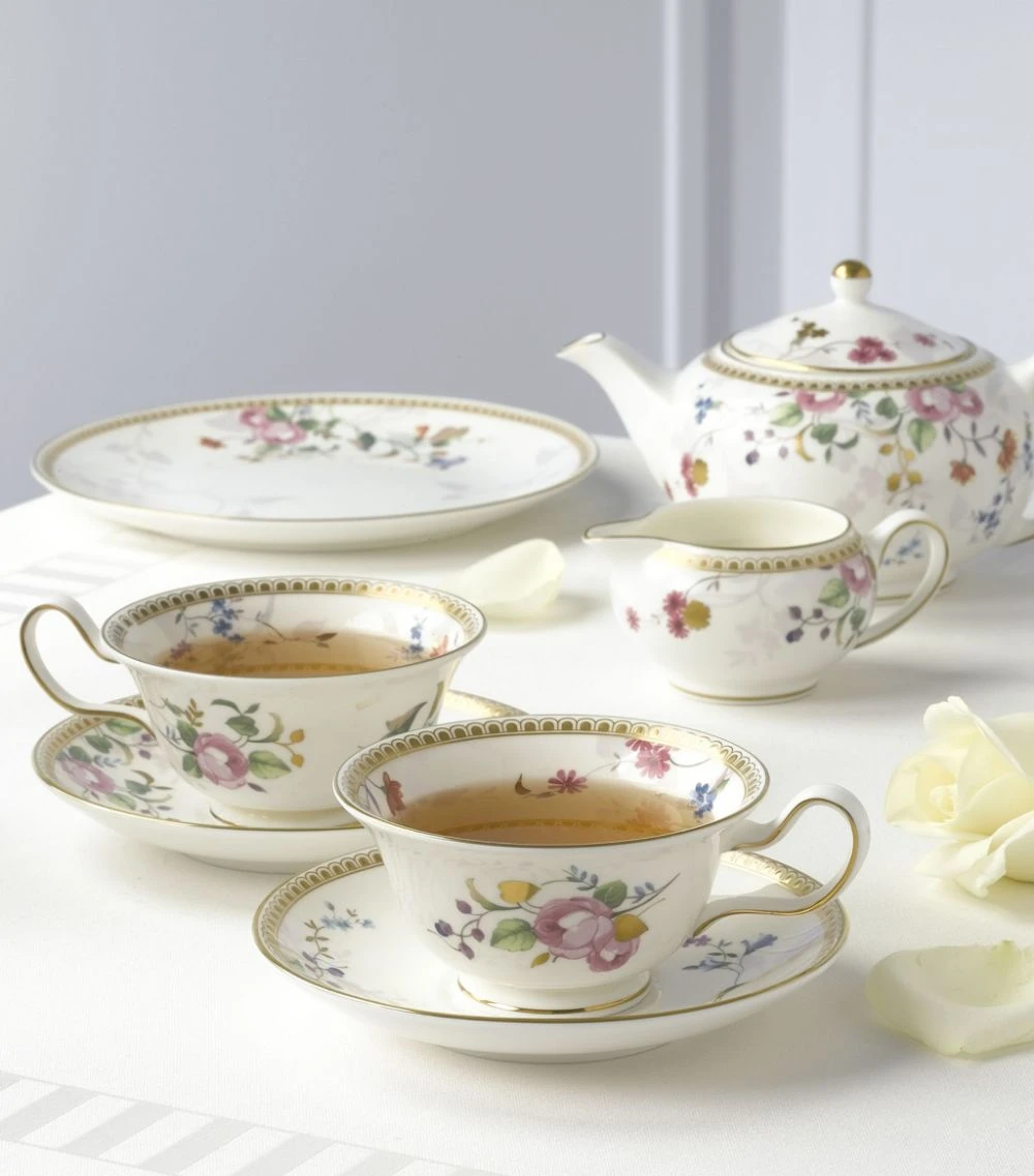 Framed by tendrils of colourful native flowers, this Rose Gold plate is one of Wedgwood’s most endearing archival designs. Adorned with a neoclassical gold border, it is crafted with fine bone china and exudes quaint English charm -perfect for gifting or graceful tea party indulgences.