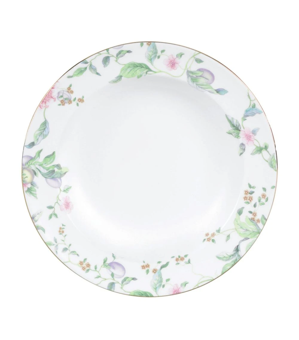 Inspired by the classic English plum orchard, the Sweet Plum collection from Wedgwood takes 18th century plum motifs and translates them into a print that brings to mind yesteryear, while still feeling suitable for the modern day. Crafted from fine bone china, the pieces are decorated with timeless floral pastels and accented by lustrous gold trimming. This soup plate from the range is sure to make a whimsical addition to your dinner service.