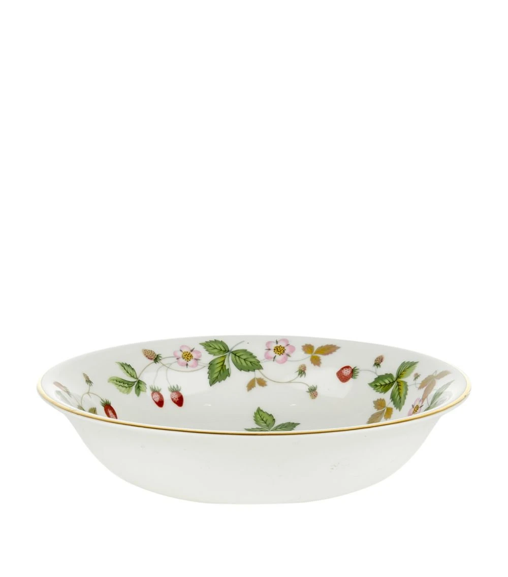 Wedgwoods wild strawberry cereal bowl is inspired by the British tradition of strawberries and cream and has been crafted in bone china and features hand-decorated finely-drawn leaves, flowers and succulent red strawberries throughout, while a lustrous 22 carat gold rim completes the design. Both elegant and whimsical, it will lend a touch of effortless charm to your home.
