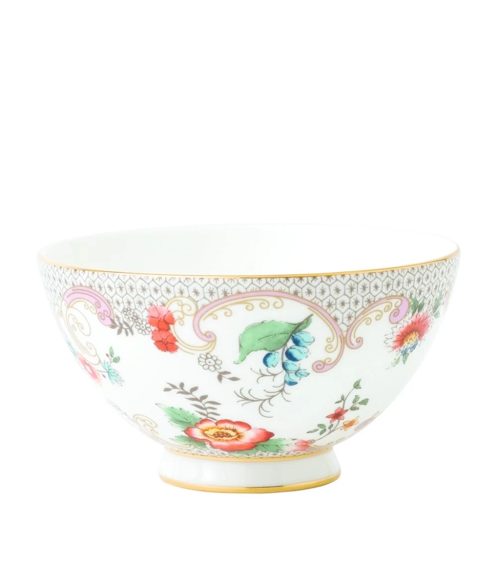 Inspired by the magic of exotic travel, the Wedgwood Wonderlust collection is imbued with vibrant culture, eclectic spirit and an array of colourful patterning. Crafted from fine bone china, the charmingly printed Wonderlust Rococo Flowers bowl is adorned in chinoiserie-inspired detailing for antique elegance.